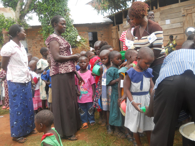 Children lining up for porridge.