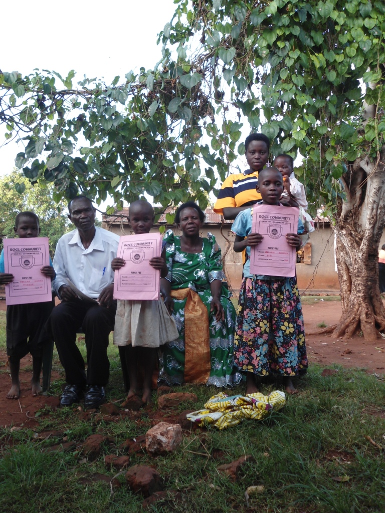 Mr. Charles Wadeya (parent’s chairperson) sits with his wife, as their children (students at RCS) show their report cards.